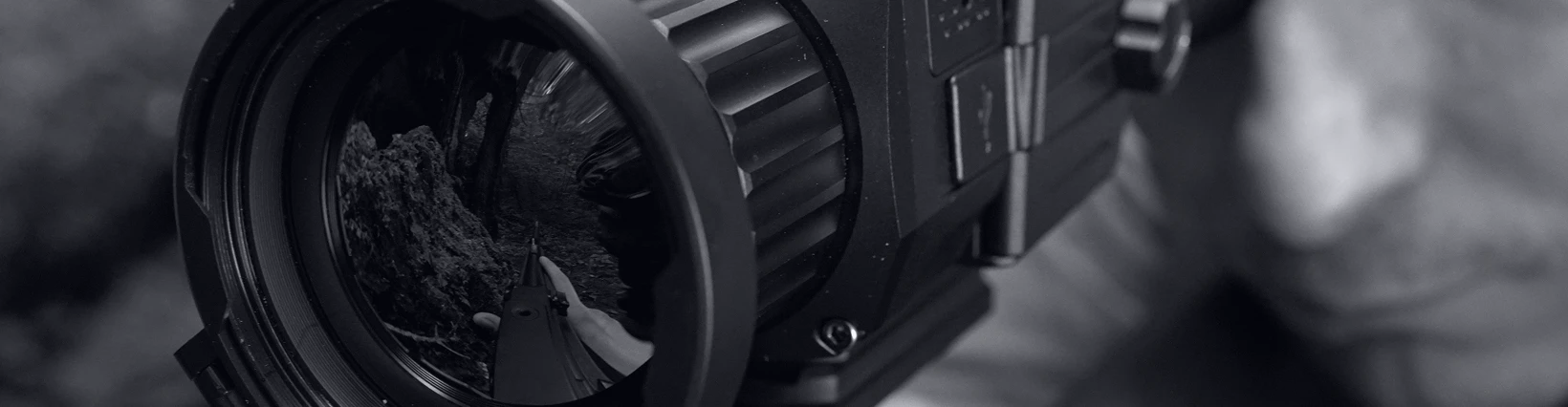 Прибор оснащен светосильным объективом с фокусным расстоянием 35 мм и апертурой F1.1. Начальное оптическое увеличение составляет 3,5х. С помощью функции цифрового зума изображение можно плавно масштабировать вплоть до кратности 21х. Угол пространственного поля зрения FOV (Field of view) при минимальной кратности равен 13°, что обеспечивает видимость пространства размером 23 метра на стометровом отдалении. Настройка объектива на резкость производится путем поворота фокусировочного кольца.